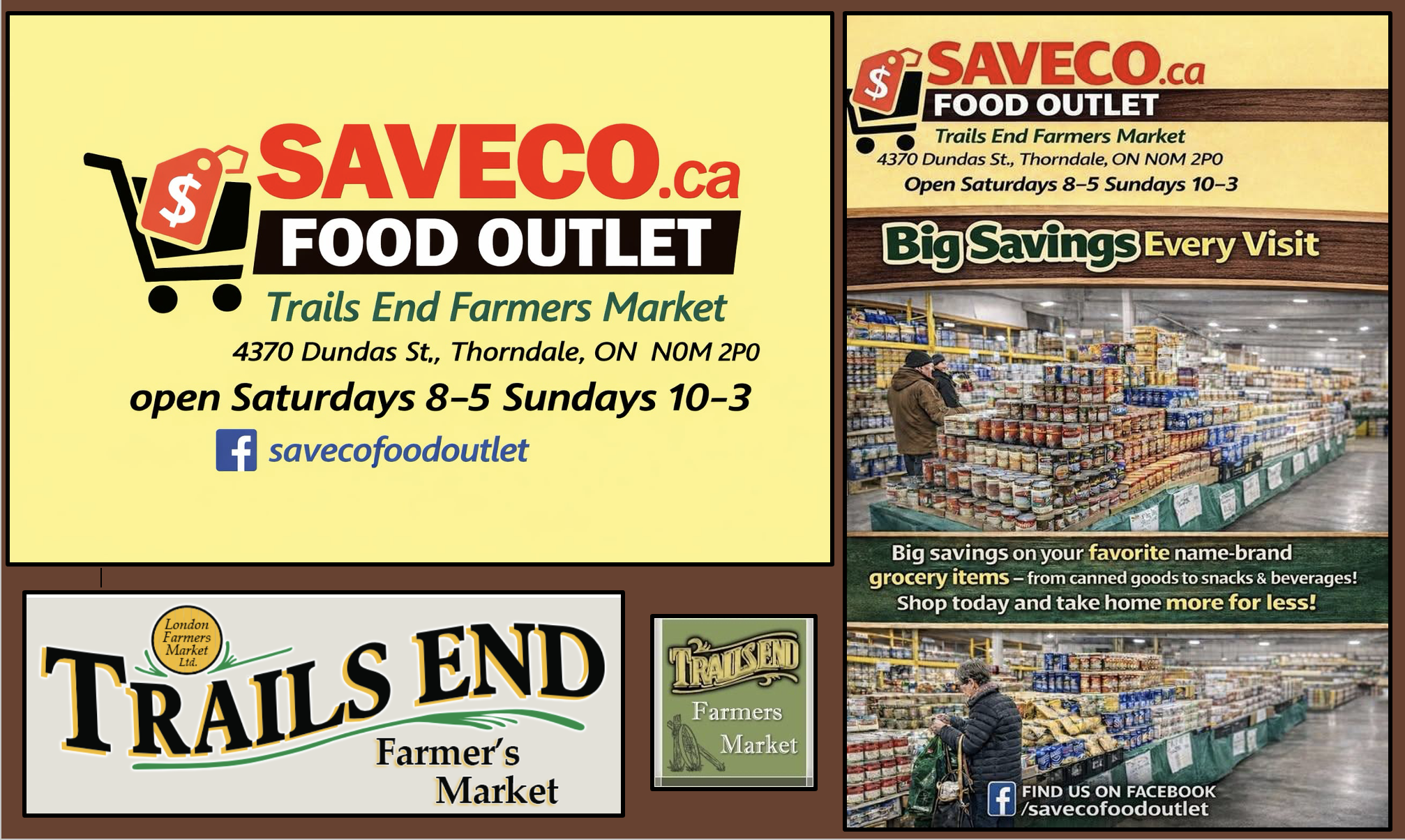 Every Saturday (8 AM - 5 PM) and Sunday (10 AM - 3 PM), come visit SaveCo Food Outlet for the best savings on your favourite brand name products!